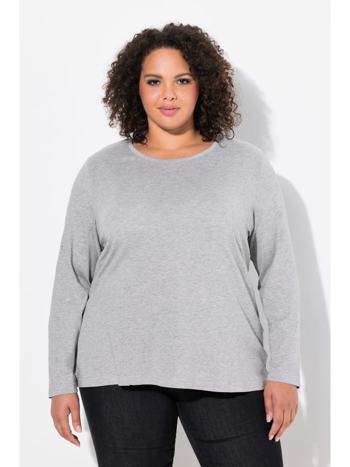 Рубашка с длинными рукавами. Круглая горловина. Приталенный крой. Слегка расклешенный силуэт. Длина с учетом размера: прибл. 68 - 78 см. Красивый топ из высококачественного хлопка и вискозы, слегка А-силуэта. Доступно в различных цветах, с длинными рукавами и круглым вырезом — идеально для комбинирования! Можно стирать в стиральной машине.