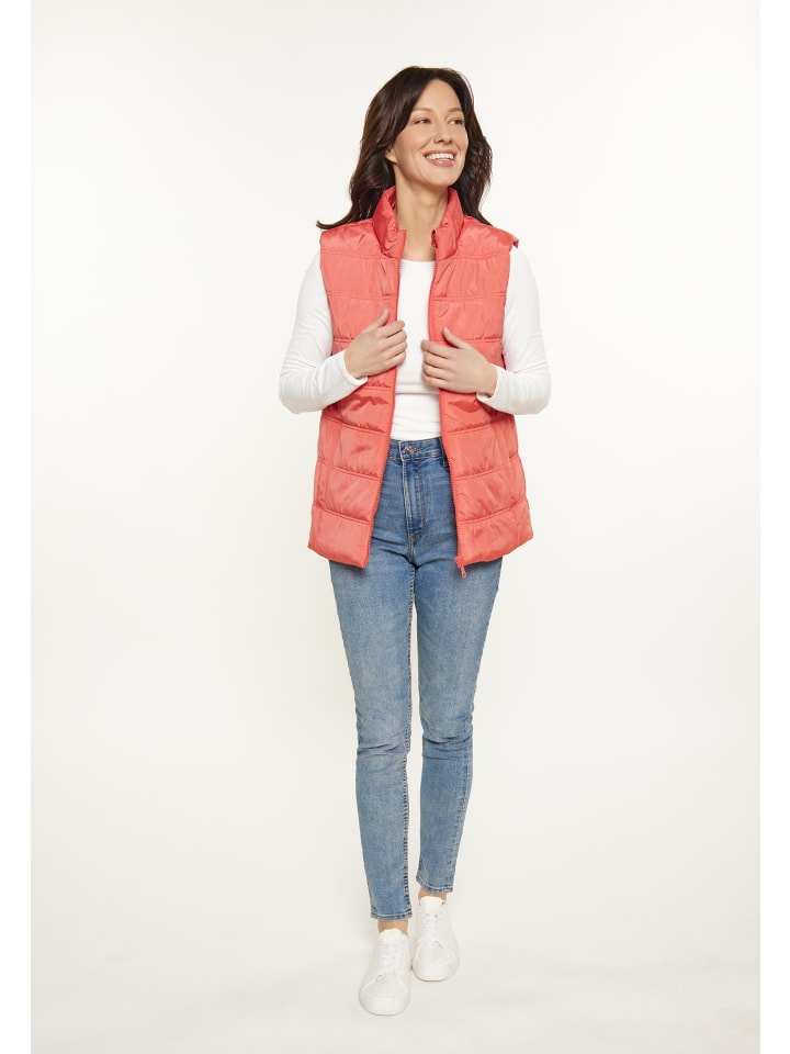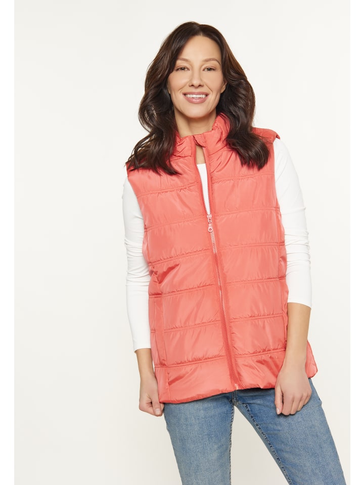 Откройте для себя универсальный жилет без рукавов, предназначенный для многослойной одежды, с воротником-стойкой и молнией спереди. Он имеет стандартный крой и стеганый узор с горизонтальной строчкой для комфорта и изоляции. Идеально подходит для повседневной, повседневной или спортивной моды. Часть коллекции верхней одежды.