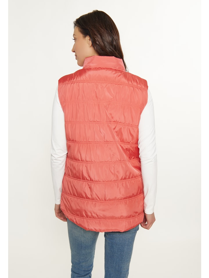 - Жилет стандартного кроя с воротником-стойкой и без рукавов