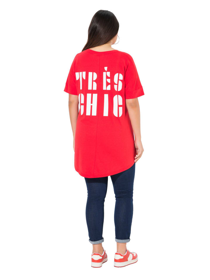 Футболка оверсайз с крупным принтом на спине в стиле très chic. Круглый вырез, короткие рукава, закругленный подол сзади и прибл. на 12 см длиннее.