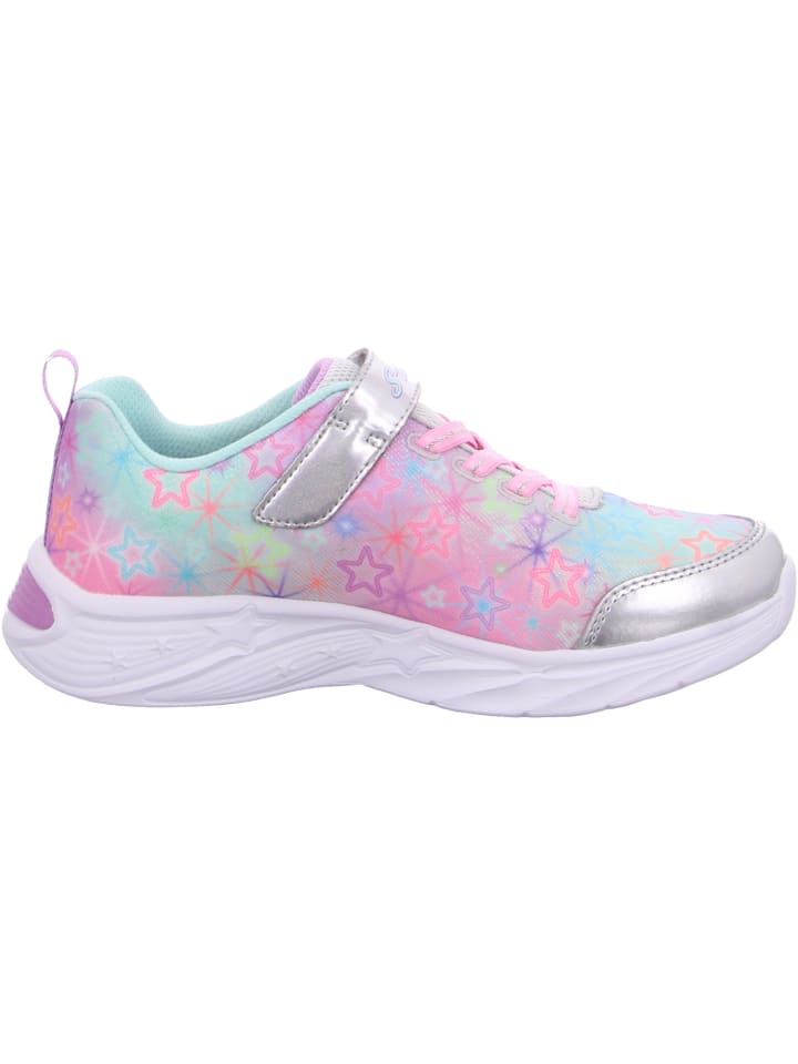 Осветите свои шаги в стиле суперзвезды с помощью фонарей Skechers S-Lights: Star Sparks. Спортивный, яркий дизайн отличается блестящей тканью со звездным принтом и синтетическим верхом с эластичными шнурками.