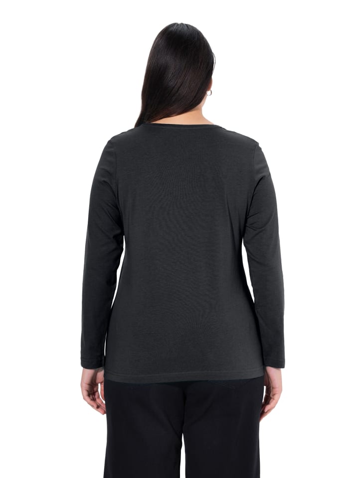 Рубашка с длинными рукавами. Круглая горловина. Приталенный крой. Слегка расклешенный силуэт. Длина с учетом размера: прибл. 68 - 78 см. Красивый топ из высококачественного хлопка и вискозы, слегка А-силуэта. Доступно в различных цветах, с длинными рукавами и круглым вырезом — идеально для комбинирования! Можно стирать в стиральной машине.