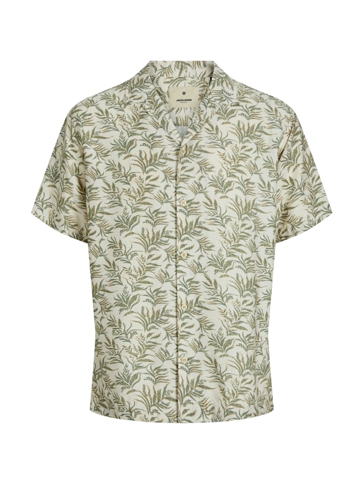 Эта стильная рубашка с короткими рукавами от Jack & Jones станет идеальным компаньоном для расслабленных летних дней. Воротник-стойка и планка с пуговицами придают изделию непринужденную элегантность. Изготовлен из высококачественной саржевой ткани, обеспечивает высокий комфорт при ношении и приятен на ощупь. Свободный крой обеспечивает оптимальную свободу движений и ощущение воздушности. Минималистичный дизайн без нагрудного кармана подчеркивает современный пляжный стиль. Универсальная вещь, которая просто необходима тем, кто ценит стиль и комфорт. - Курортный воротник