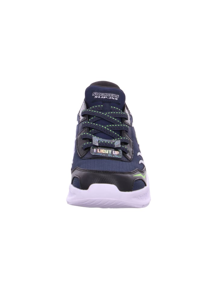 Покажите свою спортивную сторону с удобными очками Skechers Hands Free Slip-Ins S-Lights: Meteor-Lights – Brisk-Beams. Эти светящиеся кроссовки без застежек с эксклюзивной подушкой Skechers Heel Pillow имеют сетчатый верх с термоплавкой металлической накладкой, эластичную шнуровку, стельку Skechers Air-Cooled Memory Foam и амортизирующую светящуюся промежуточную подошву.