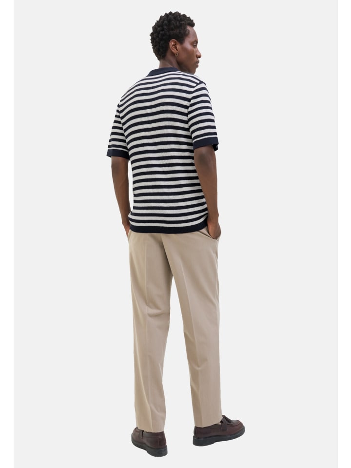 Эта мужская рубашка с короткими рукавами впечатляет сочетанием стильного трикотажного дизайна и высокого комфорта при носке. Модель имеет классический крой, классический воротник-поло и планку на пуговицах, что придает ей вневременный вид. Тональные пуговицы гармонично вписываются в общий образ, а изящные трикотажные детали на манжетах, воротнике и планке с пуговицами элегантно завершают дизайн. Трикотажный материал приятен на ощупь и обеспечивает оптимальную воздухопроницаемость в теплые дни. Тканая этикетка на боковом шве добавляет акцент высокого качества. Идеально подходит для стильных мужчин, ценящих комфорт и модные детали. - Обычная посадка