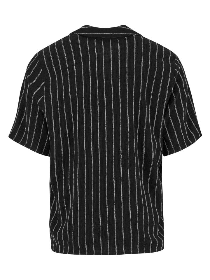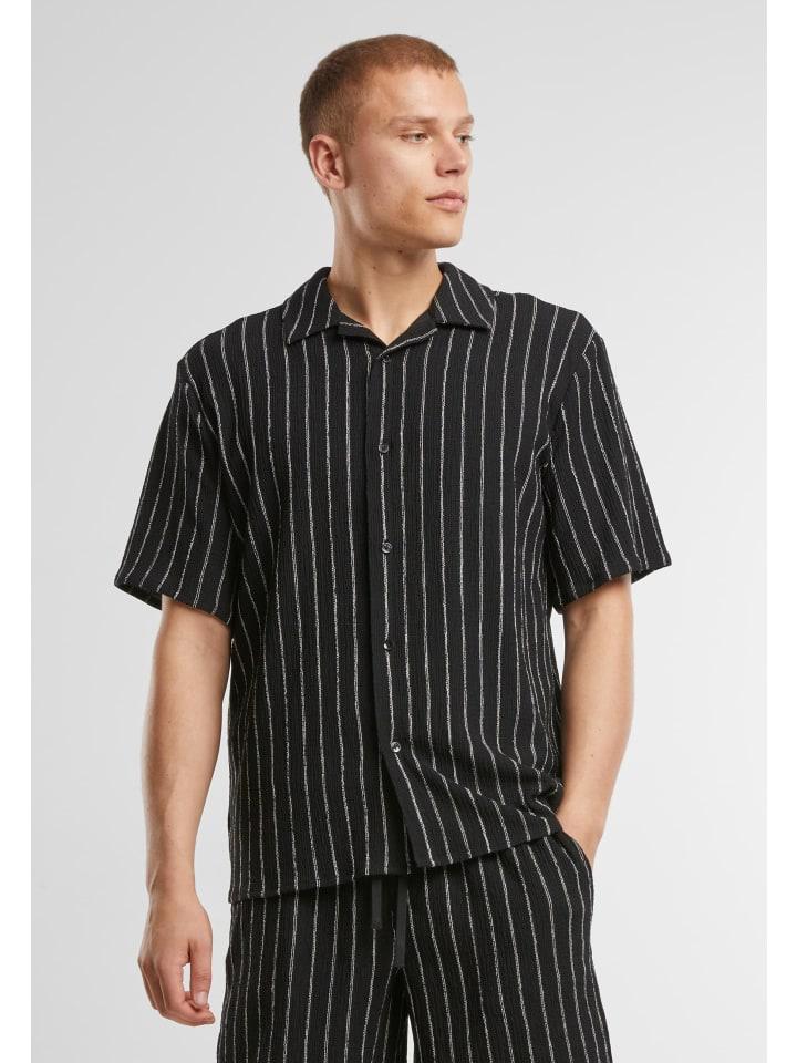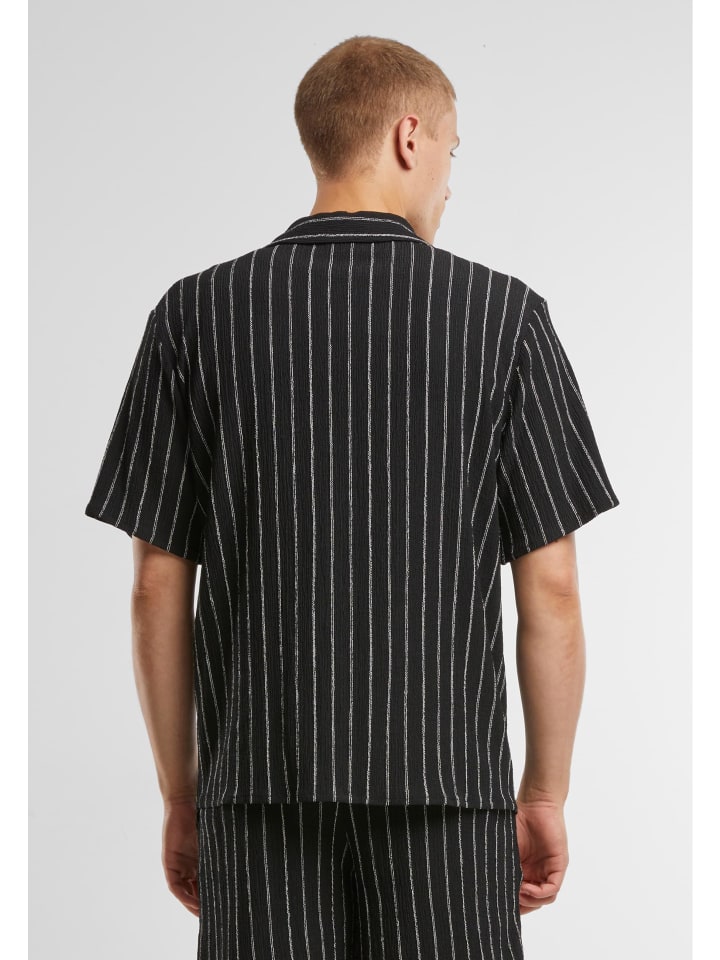 Откройте для себя непринужденный стиль с этой полосатой рубашкой с жатым узором. Короткие рукава и свободный крой обеспечивают удобную посадку, идеально подходящую для теплых дней или повседневных случаев. Классический воротник и длинная планка с пуговицами придают рубашке вневременную элегантность, а изящная структура добавляет современный штрих. Эта рубашка идеально сочетается с шортами или легкими брюками и станет универсальным спутником для непринужденных моментов.