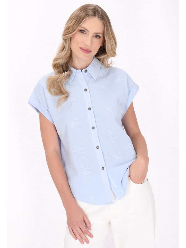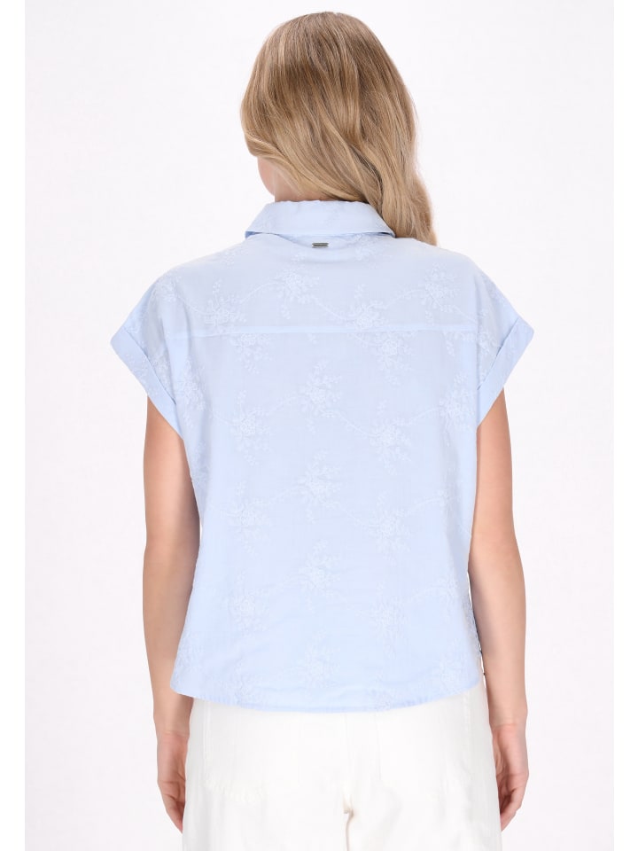 Поднимите свой гардероб с помощью элегантной блузки из нашей коллекции Maritim. Эта блузка прямого кроя, созданная для неподвластного времени очарования, имеет классический воротник, изящные рукава-крылышки и застежку на пуговицы спереди. Сложная цветочная вышивка на тканом материале добавляет нотку непринужденной изысканности, делая ее идеальной для любого случая.