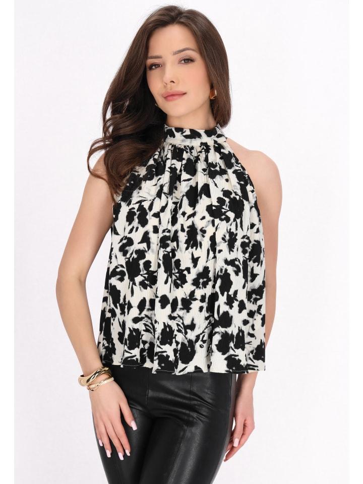 - Блузка свободного кроя с халтер-воротом и без рукавов