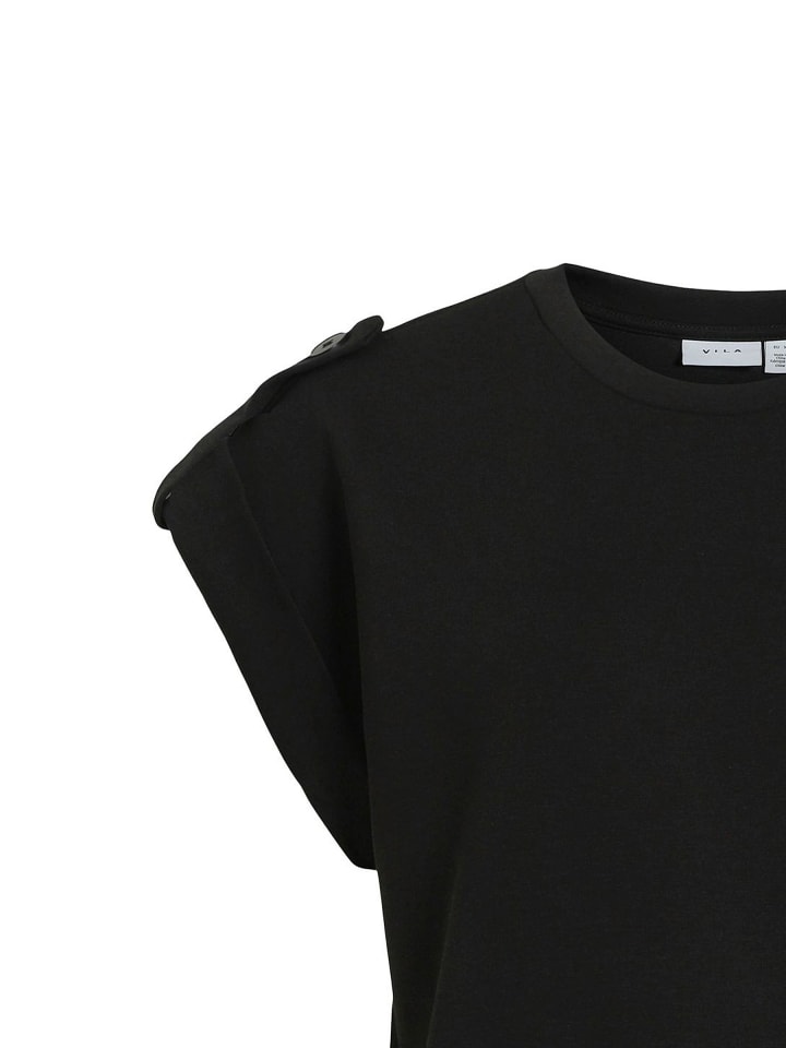 ---- Женская футболка VISIFFI O-NECK CAP SLEEVE TOP/PB VILA с пуговицами на плечах и круглым вырезом ----/ Изделие соответствует размеру. / Материал: 80% полиэстер, 15% вискоза, 5% эластан / Посадка: Стандартная / Застежка: Без застежки 8570 / Инструкции по уходу: Машинная стирка при 30°C