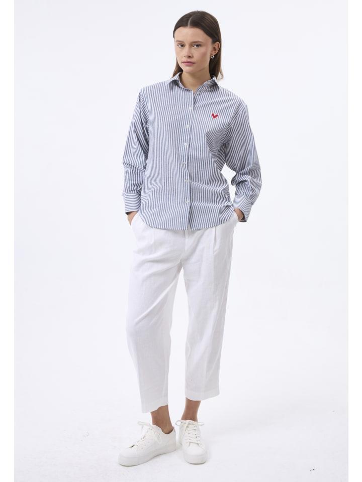 Женская рубашка свободного кроя Felix Hardy с длинными рукавами и полосками сочетает в себе классический стиль и современный комфорт. Эта рубашка из мягкой, дышащей ткани обеспечивает удобную посадку и при этом сохраняет аккуратный вид. Классический полосатый рисунок добавляет нотку изысканности и делает его подходящим как для деловых, так и для повседневных случаев. Застежка на пуговицы спереди и острый воротник создают структурированный, подчеркивающий фигуру силуэт. Длинные рукава можно закатать, чтобы создать более непринужденный образ, что делает модель универсальной для разных случаев. Эту полосатую рубашку можно носить с брюками, юбками или джинсами, она станет универсальным предметом гардероба, легко сочетающим в себе стиль и комфорт. - Сплошные цвета
