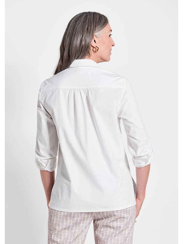 Удлиненная блузка, которая отлично сочетается с узкими брюками. Независимо от того, закрытая ли она или открытая в качестве замены куртки, эта модель предлагает вам множество вариантов стилизации. С воротником-стойкой и длинными рукавами, которые можно закатать до 3/4 длины и закрепить с помощью хлястика и пуговицы. Боковые разрезы обеспечивают оптимальную свободу движений. Изготовлено из эластичного, приятного на ощупь хлопка. Длина ок. Размер 76 см. 46, ок. 72 см в размере 23.