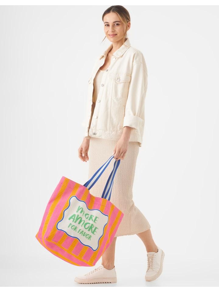 Отправьтесь за покупками или поплавайте со стилем. Это не проблема с этой прочной сумкой, изготовленной из прочного хлопкового полотна. Сумка-шоппер очень модная, с яркой надписью «MORE AMORE POR FAVOR» и предлагает достаточно места для покупок или полотенца, солнцезащитного крема и т. д. Хлопковый холст впечатляет своей натуральностью и особой структурой поверхности. Все холщовые сумки изготавливаются на фабриках в Индии с использованием местного опыта традиционного жаккардового ткачества. Дизайн узоров и цветов типичен для CODELLO и инновационно сочетается с мотивами нашей коллекции. Это создает по-настоящему уникальные изделия с любимым персонажем.