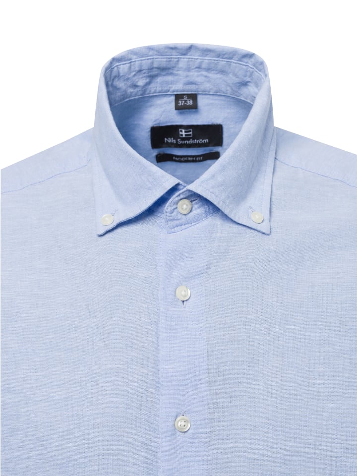Легкая, повседневная и стильная: рубашка из хлопка с добавлением льна и современным воротником на пуговицах от Нильса Сундстрема выводит летнюю элегантность на первый план в непринужденной манере. - Современный крой