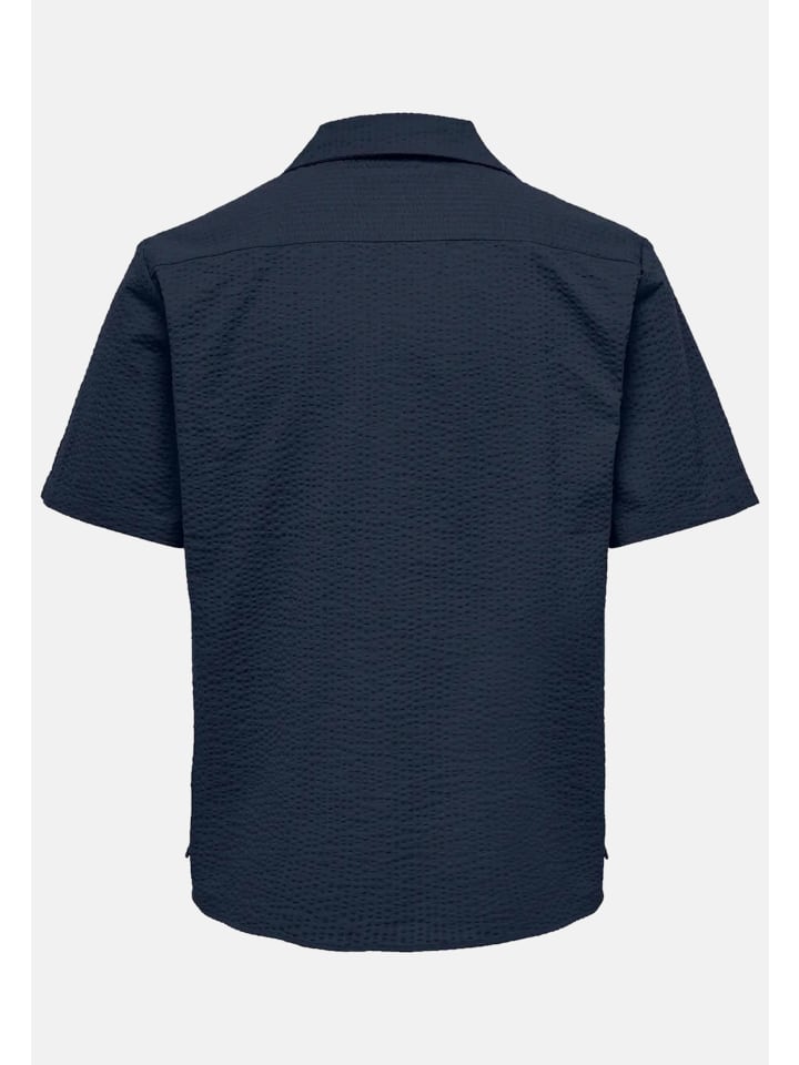 Эта мужская рубашка с короткими рукавами имеет классический крой и изготовлена из легкой фактурной ткани сирсакер, которая обеспечивает комфорт, особенно в теплые дни. Воротник-стойка придает рубашке повседневный вид, а контрастные пуговицы и воротник в тон добавляют изящные детали. Накладной нагрудный карман с левой стороны обеспечивает практичность. Тканая этикетка и вешалка внутри завершают дизайн. Благодаря классической планке с пуговицами и воздушному крою эта рубашка идеально подходит для непринужденного летнего образа. - Обычная посадка