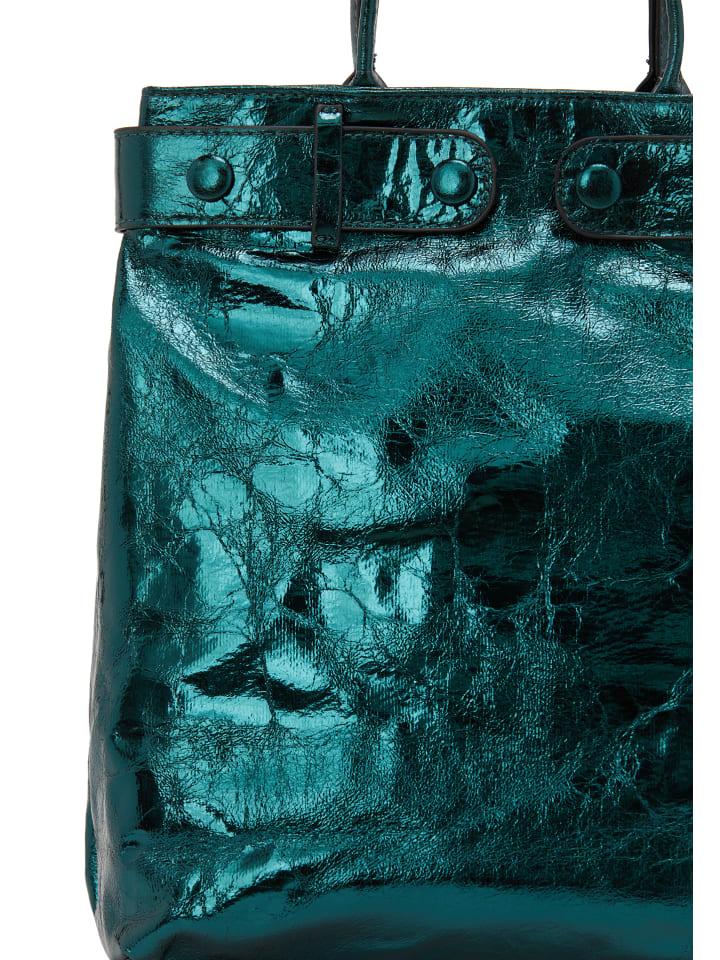 - Маленькая сумочка-трапеция с верхними ручками и кнопкой