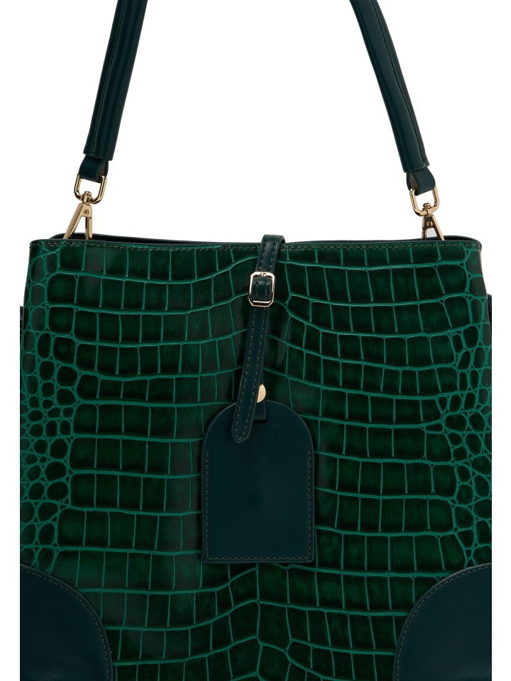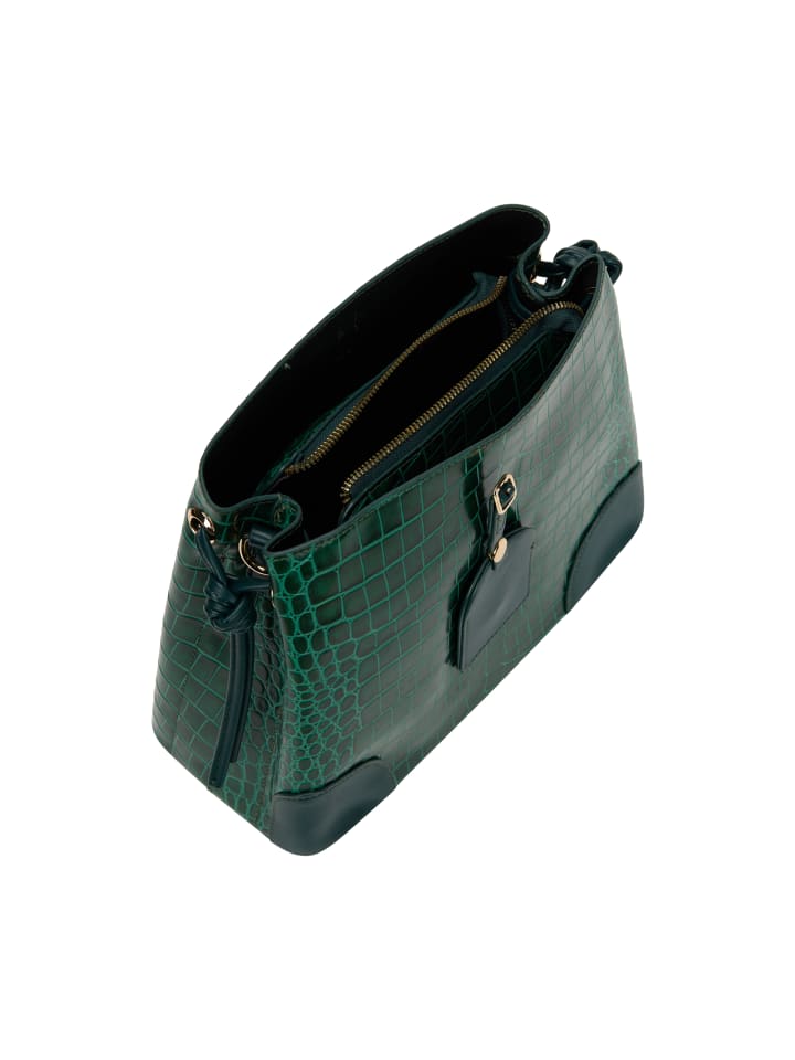 Откройте для себя эту стильную сумку через плечо, выполненную с ярким узором под аллигатора, который демонстрирует рельефные чешуйки для дополнительной текстуры. Разработанная с прочными ручками и дополнительным ремнем, она предлагает универсальные варианты ношения. С тремя отделениями и надежной застежкой-молнией эта сумка идеально подходит для любого повседневного случая, сохраняя при этом порядок.
