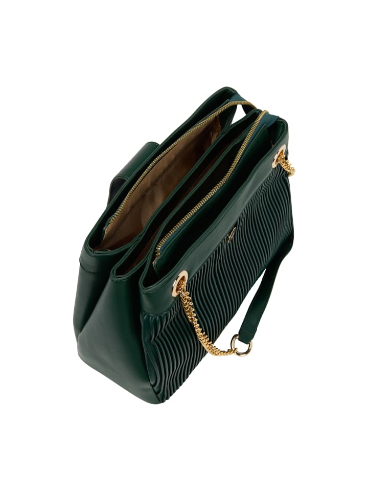 Идеально подходит для случаев возвращения в офис, эта структурированная сумка может похвастаться плиссированной текстурой и плечевым ремнем с цепочкой для универсальных вариантов переноски. Благодаря трем отделениям с застежками-молниями, она предлагает достаточно места для хранения. Прямоугольная форма с более широким основанием подчеркивает ее стильный вид, а декоративная застежка добавляет элегантный штрих.