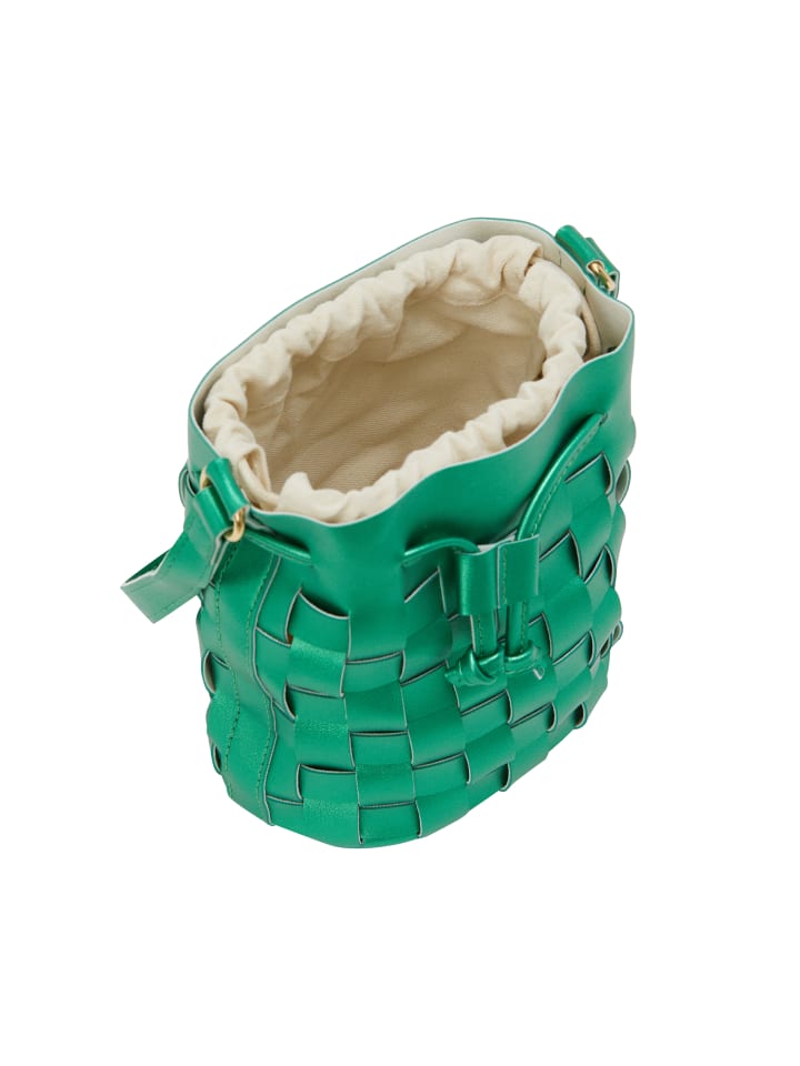 Представляем структурированную сумку-ведро с характерной плетеной текстурой снаружи. Эта стильная вещь имеет застежку-шнурок и регулируемый ремень для универсальных вариантов ношения. Элегантные детали фурнитуры добавляют изысканности, а плоское основание обеспечивает устойчивость. Благодаря просторному внутреннему пространству и внутреннему карману эта сумка идеально подходит для вечеринок.