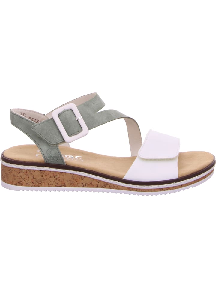 Комфорт и стиль. С этими босоножками на танкетке Rieker мятно-зеленого цвета, которые подойдут для повседневного использования, вы всегда будете хорошо одеты и сможете рассчитывать на максимальный комфорт. Оптимальную поддержку и идеальную посадку гарантируют широкие лямки, регулируемая застежка-липучка и узкий ремешок на пятке. Легкая и амортизирующая подошва бережно относится к вашим ногам при каждом шаге. Чего еще можно желать?