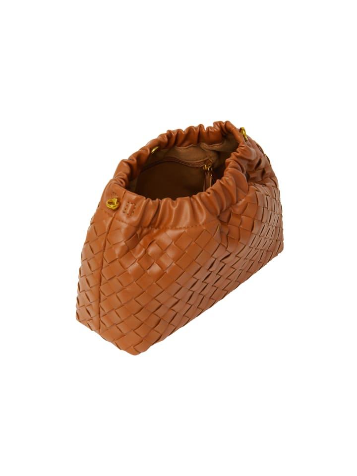 Эта сумочка отличается уникальной плетеной текстурой и элегантным дизайном. Закругленный верх со сборками создает мягкий силуэт, а структурированное основание обеспечивает устойчивость. Подчеркнутая золотистой фурнитурой, она предлагает просторное внутреннее пространство с внутренним карманом для организации. С застежкой на кнопку и дополнительным ремешком она идеально подходит для любого элегантного случая.