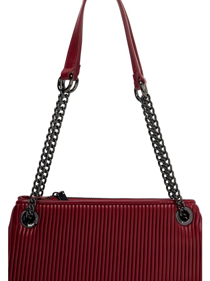 Поднимите свой стиль с помощью этой структурированной сумки через плечо, разработанной с вертикальными складками для изысканного штриха. Она имеет шикарный цепной ремень и прочные плоские ручки для универсальности. С двумя отделениями и надежной застежкой-молнией эта сумка идеально подходит для случаев, связанных с возвращением в офис, сохраняя при этом гладкий однотонный узор, который дополняет любой наряд.