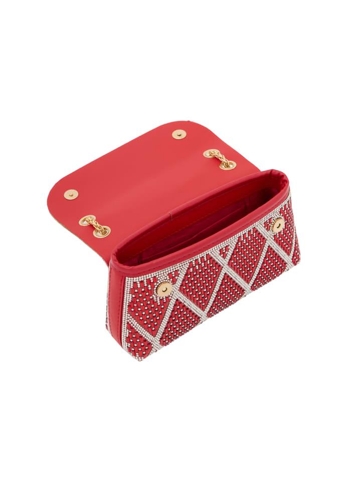 Откройте для себя эту структурированную прямоугольную сумку-клапан с шикарным цепочным ремешком для универсального стиля. Очаровательный ромбовидный узор снаружи красиво украшен сверкающими украшениями, что делает его идеальным для элегантных случаев. Благодаря гладкой отделке и практичному внутреннему карману эта сумочка безупречно сочетает в себе стиль и функциональность.