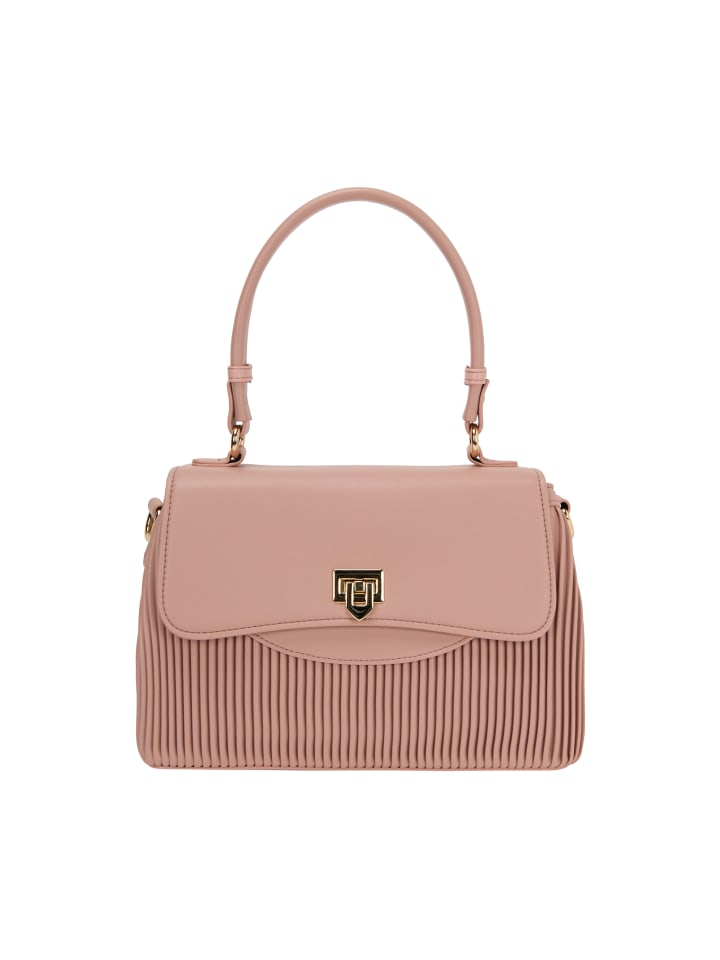 Откройте для себя изысканную сумочку, разработанную со структурированным силуэтом, с верхней ручкой и дополнительным ремешком для универсальности. Элегантная застежка на переднем клапане добавляет очарования, а однотонный узор усиливает ее привлекательность. С тремя отделениями внутри эта сумка идеально подходит для любого элегантного случая, который вы задумали.