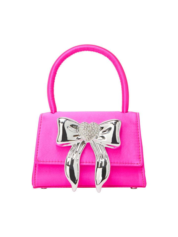 Откройте для себя эту стильную сумочку с гладкой прямоугольной формой и клапаном, подчеркнутую очаровательным бантом спереди. Металлический бант имеет заклепку в форме сердца для дополнительного шика. Разработанная для вечеринок, она включает в себя дополнительную цепочку, ромбовидный узор и внутренний карман, сочетая практичность с элегантностью в одном шикарном изделии.