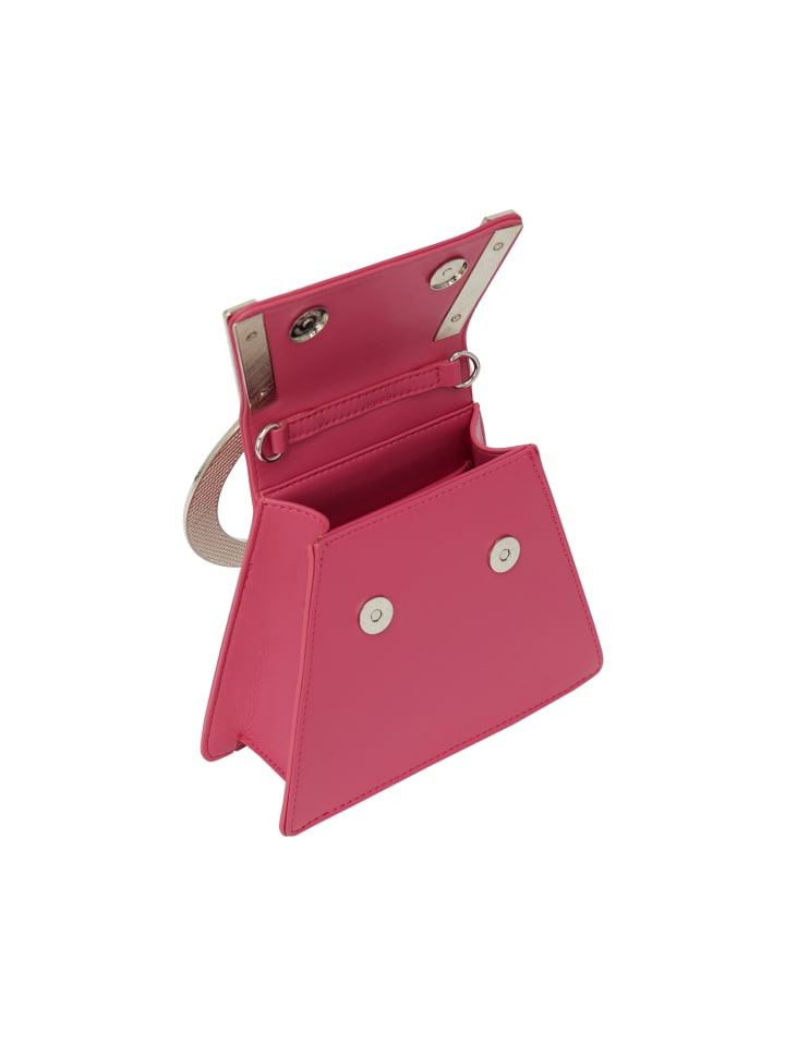 Поднимите свой стиль с помощью этой уникальной сумки с шикарной круглой ручкой, украшенной сверкающими деталями. Ее структурированный корпус сужается до модной треугольной формы, дополненной передним плоским карманом для дополнительной функциональности. С дополнительной цепочкой, внутренним карманом и надежной застежкой-клапаном эта модель идеально подходит для любого праздничного случая.