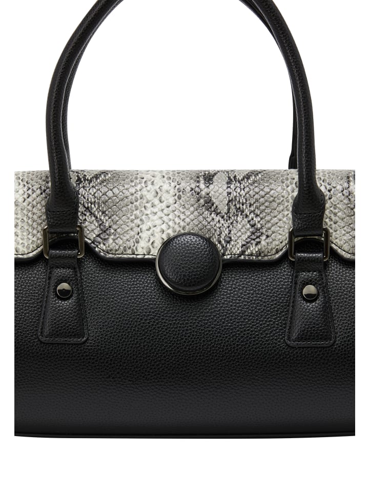 Откройте для себя изысканную сумочку с прочными ручками для удобной переноски. Корпус с рисунком под аллигатора прекрасно сочетается с клапаном, вдохновленным змеиной кожей, добавляя элегантности. Его округлые очертания и плоское основание гарантируют, что он будет стоять вертикально. В комплекте с внутренним карманом на молнии и дополнительным ремешком, эта модель идеально подойдет для любого элегантного случая.