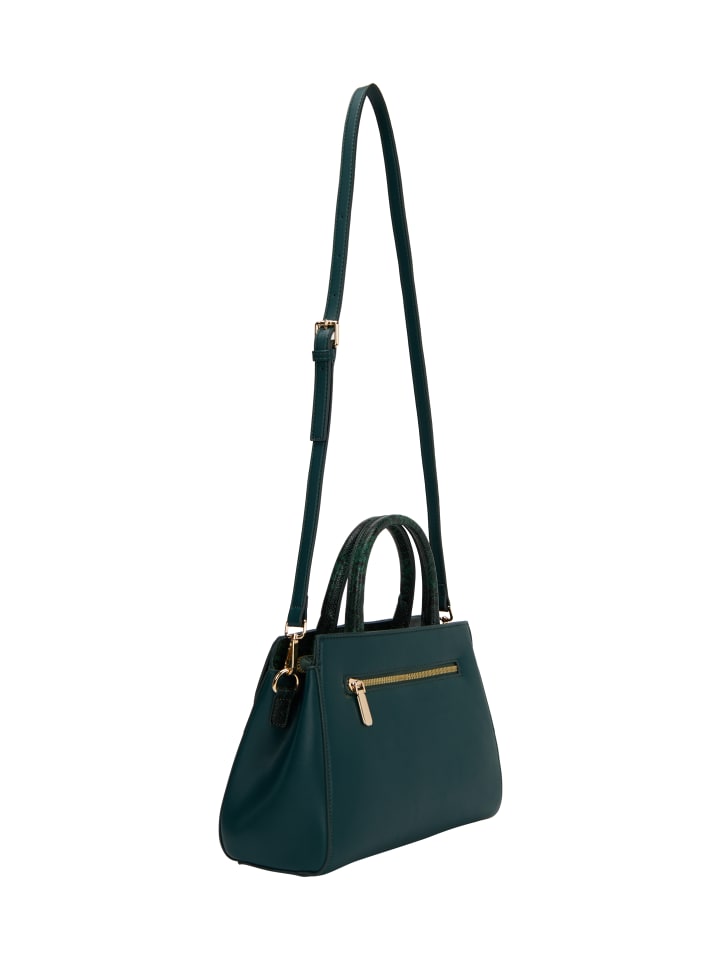 Эта стильная сумка имеет прямоугольную форму с плоским основанием и верхним клапаном, застегивающимся на шикарную пряжку. Благодаря коротким закругленным ручкам для удобства переноски она подчеркивает текстурированный змеиный узор на гладкой поверхности. С двумя отделениями для организации, дополнительным ремешком и застежкой-молнией она идеально подходит для классических случаев.