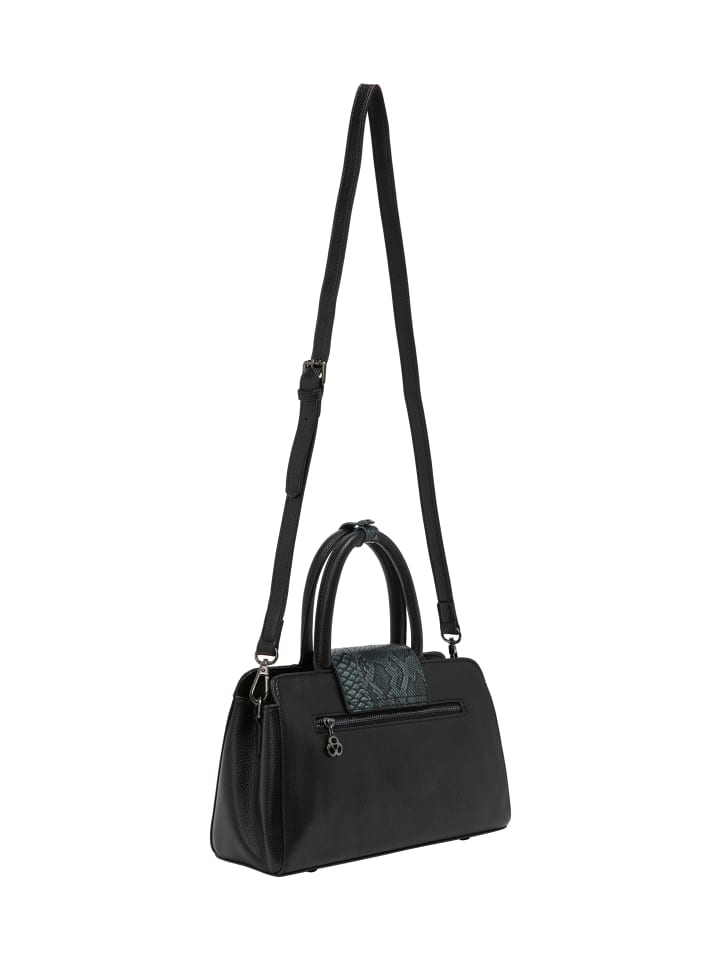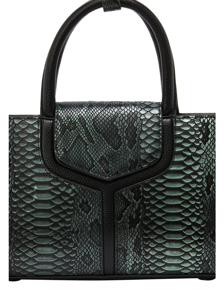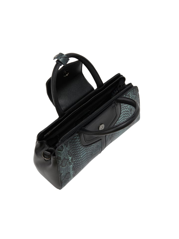 Эта структурированная сумка, созданная для утонченных, демонстрирует роскошный змеиный узор. Со стильной верхней ручкой и дополнительным ремешком для универсальности, она излучает элегантность. Внешний карман на молнии повышает функциональность, а надежная застежка-молния сохраняет ваши необходимые вещи в безопасности. Идеально подходящая для элегантных случаев, эта сумка сочетает в себе современный стиль с непреходящим очарованием.