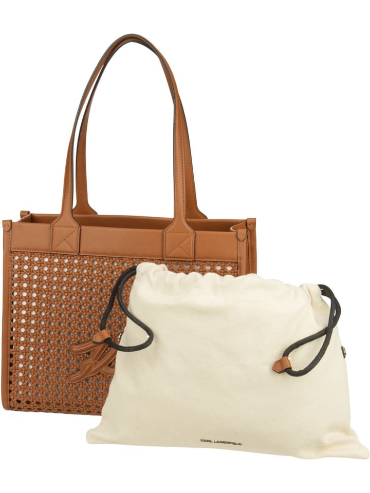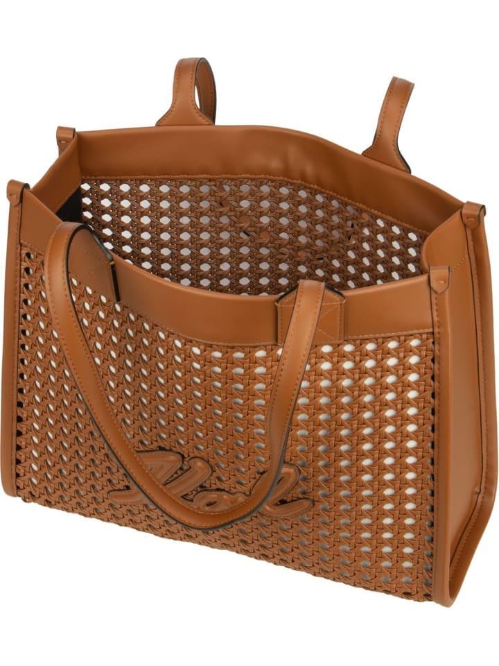 Эффектная сумка-шоппер от Карла Лагерфельда из высококачественной синтетической кожи, сочетающая в себе ностальгические мотивы и современную эстетику. Плетеный узор и просторное место для хранения делают его идеальным дополнением к образу. - привлекающая внимание сумка-шоппер от Карла Лагерфельда