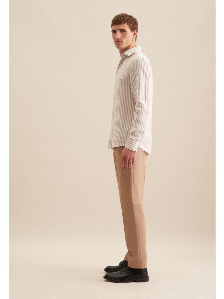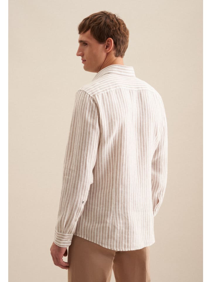 Мужская эстетика: деловая рубашка из коллекции «SMART LINEN» от Seidensticker станет универсальным предметом одежды в вашем гардеробе. Он добавит вашему образу элегантности во время отдыха или летом. Лен соткан с высокой плотностью, поэтому получается чрезвычайно прочный материал. В сочетании со 100% льном идеально подходит для создания простых в уходе деловых образов. Приталенная деловая рубашка с изящным кроем отражает современный дух времени и идеально вписывается в любой образ. Изысканный полосатый рисунок добавляет идеальный модный штрих. Эту рубашку от Seidensticker отличает элегантная современность в сочетании с формальными и повседневными аспектами. Для любителей элегантного образа эта деловая рубашка с длинными рукавами станет правильным выбором. Регулируемые по ширине манжеты скрывают классические детали. Воротник «Кент» подчеркивает универсальный деловой характер. - Посадка: облегающая