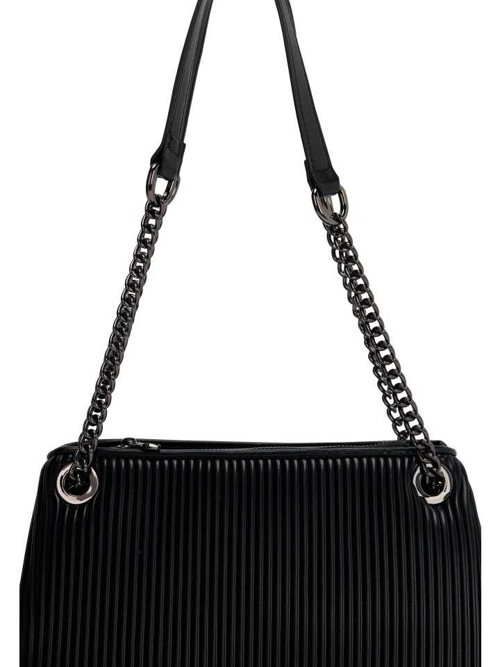 Поднимите свой стиль с помощью этой структурированной сумки через плечо, разработанной с вертикальными складками для изысканного штриха. Она имеет шикарный цепной ремень и прочные плоские ручки для универсальности. С двумя отделениями и надежной застежкой-молнией эта сумка идеально подходит для случаев, связанных с возвращением в офис, сохраняя при этом гладкий однотонный узор, который дополняет любой наряд.