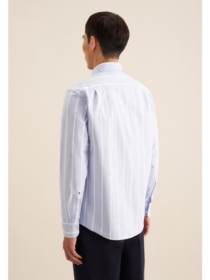 Мужская эстетика: повседневная рубашка от Seidensticker из коллекции «SMART CASUAL» дополнит ваш гардероб высококачественным образом, отражающим дух времени. Это универсальный компаньон, который идеально подойдет для мероприятий, отдыха, офиса или домашнего кабинета и подойдет ко многим различным образам. Ткань Oxford, изготовленная из 100% хлопка, мягкая, но прочная, создает плотный, высокоструктурированный вид, что делает ее идеальной для создания элегантного образа. Повседневная рубашка обычного кроя сидит свободно и не так обтягивающе, обеспечивая оптимальный комфорт. Изысканный полосатый рисунок добавляет идеальный модный штрих. Эта рубашка воплощает в себе классическую элегантность и современный стиль. Для любителей элегантных образов эта повседневная рубашка с длинными рукавами станет хорошим выбором. Модель дополнена регулируемыми манжетами. Воротник на пуговицах особенно подчеркивает спортивный, современный характер. Интересная деталь – нагрудный карман. - Посадка: Обычная
