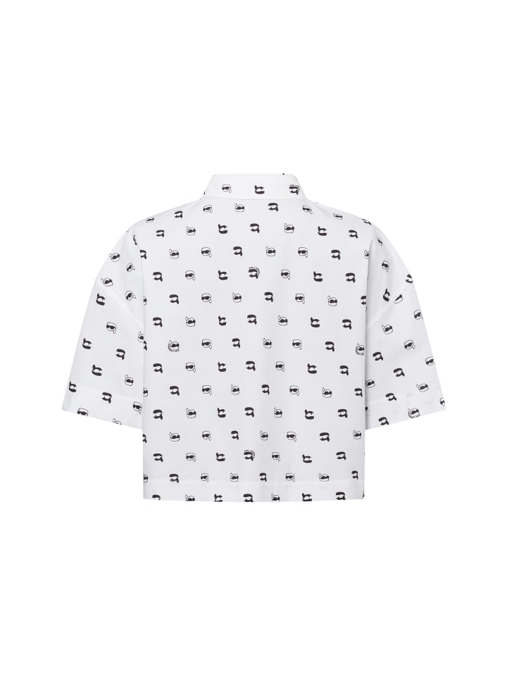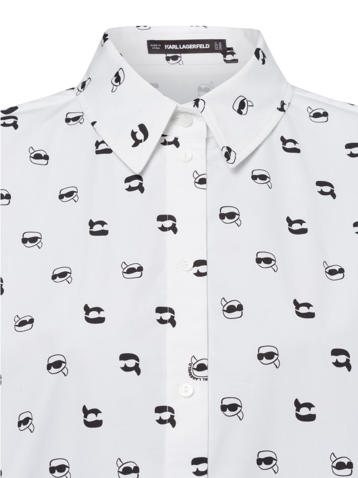 Блузка с короткими рукавами Ikon AOP от KARL LAGERFELD из высококачественного хлопкового поплина впечатляет элегантным сплошным принтом и современным воздушным силуэтом. - свободный, свободный крой
