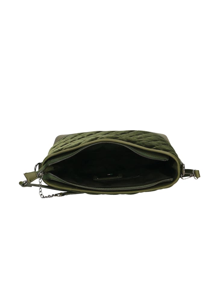 Женская сумка через плечо, одно отделение со съемным регулируемым плечевым ремнем. Изделие ручной работы из натуральной стеганой замши и доллара. Сделано в Италии 25x31x11