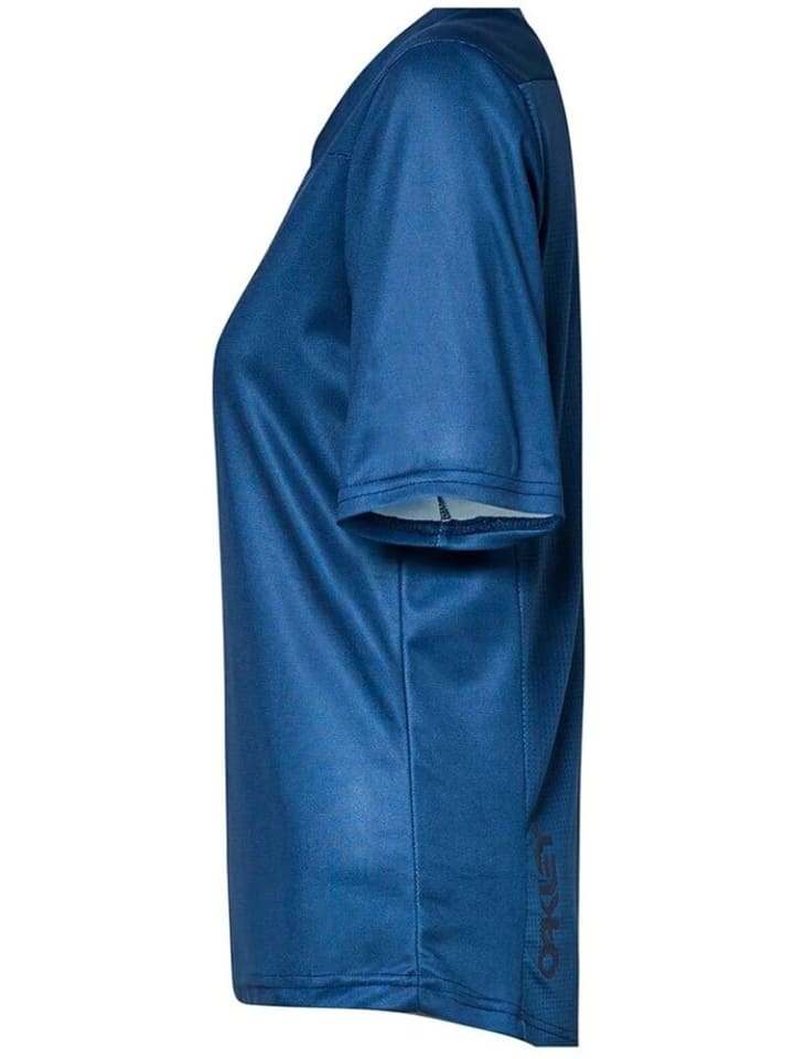 Женская велосипедная майка Oakley WMNS Factory Pilot Lite SS Poseidon синего цвета с короткими рукавами сочетает в себе уверенный стиль и комфорт и является лучшим выбором для катания по пересеченной местности.