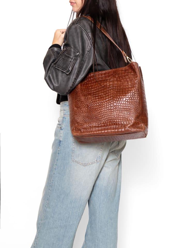 Женская сумка через плечо из натуральной кожи с тиснением под крокодила. Оснащен съемным и регулируемым плечевым ремнем. Изделие ручной работы, Италия. Сделано в Италии 32x31x15