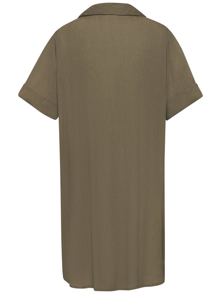 Повседневная длинная блузка с короткими рукавами от Lascana в простом дизайне. С рубашечным воротником и застежкой на пуговицы спереди. Разрезы по бокам. Можно комбинировать разными способами. Удобное креповое качество из мягкой вискозы. - Блузка-рубашка с модным воротником