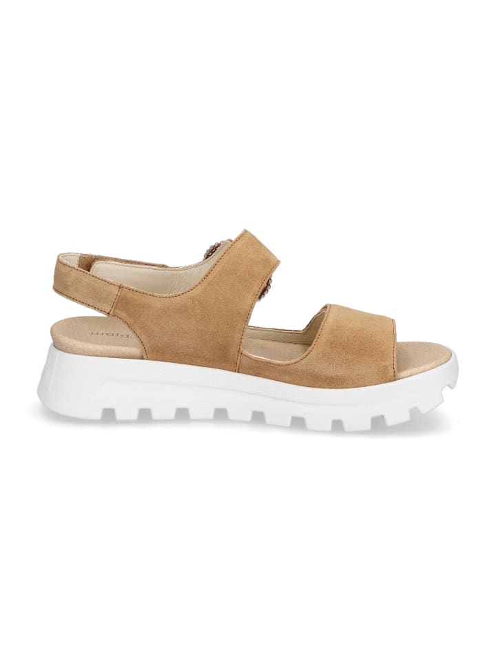 Женские сандалии Waldläufer Nele из замши коричневого цвета с практичными застежками-липучками и белой профильной подошвой