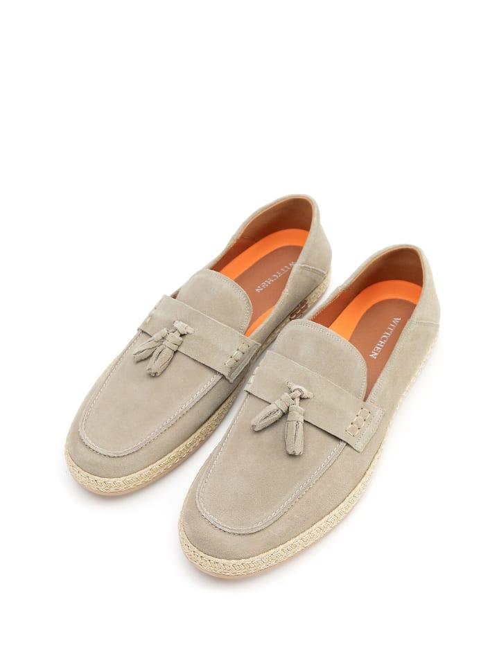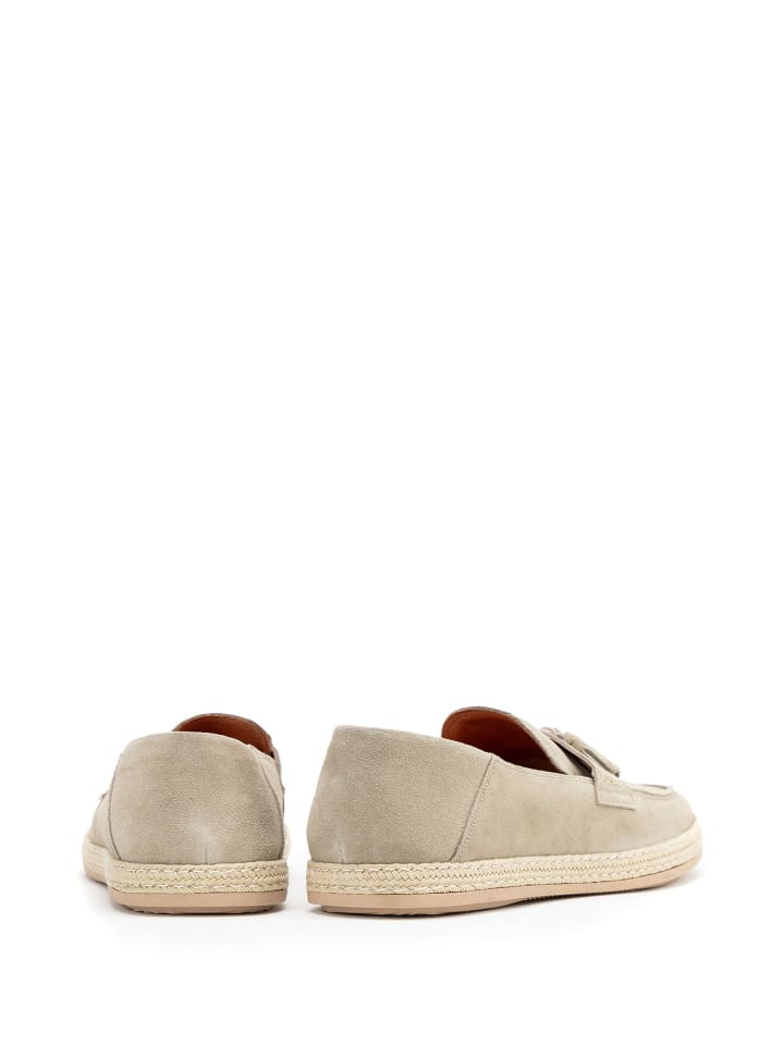 Мягкая воловья кожа с замшевой текстурой облегает ногу и обеспечивает естественную гибкость и стильную элегантность. Классический закругленный носок придает лоферам вневременной вид, а кожаная стелька обеспечивает комфорт при каждом шаге. Гибкая резиновая подошва гарантирует комфорт, а кисточка на ремешке и плетение вокруг подошвы добавляют легкости и непринужденного, праздничного характера.