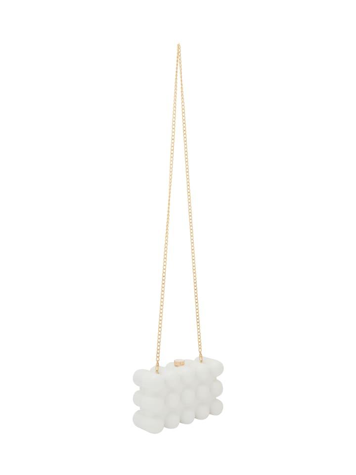 Поднимите свой праздничный ансамбль с этим потрясающим прямоугольным клатчем, демонстрирующим поразительный геометрический узор из округлых куполообразных форм. Компактный дизайн отличается шикарной декоративной застежкой для легкого доступа и включает дополнительную цепочку для универсальных вариантов укладки. Эта вещь добавит современный, скульптурный стиль любому наряду, делая ее обязательным аксессуаром.
