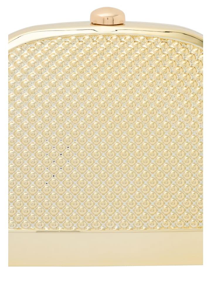Представляем структурированный клатч с закругленным верхом и плоским основанием. Текстурированная поверхность украшена рельефными точками в сетчатом узоре для привлекательного вида. Имеет застежку-застежку с круглой металлической кнопкой для дополнительной элегантности. Компактный дизайн, идеальный для предметов первой необходимости, идеально подходит для вечеринок. Дополнительный ремешок-цепочка доступен для универсальности.