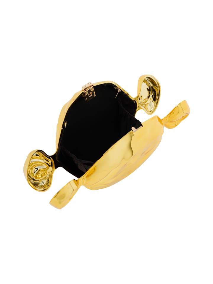 Откройте для себя причудливый клатч, вдохновленный сладостями, с глянцевой отделкой, которая ловит свет. Его игривый дизайн включает декоративную застежку сверху, идеально подходящую для защиты ваших самых необходимых вещей. Благодаря однотонному узору и дополнительной цепочке этот очаровательный предмет идеально подходит для любого праздничного случая, легко добавляя изюминку вашему ансамблю.