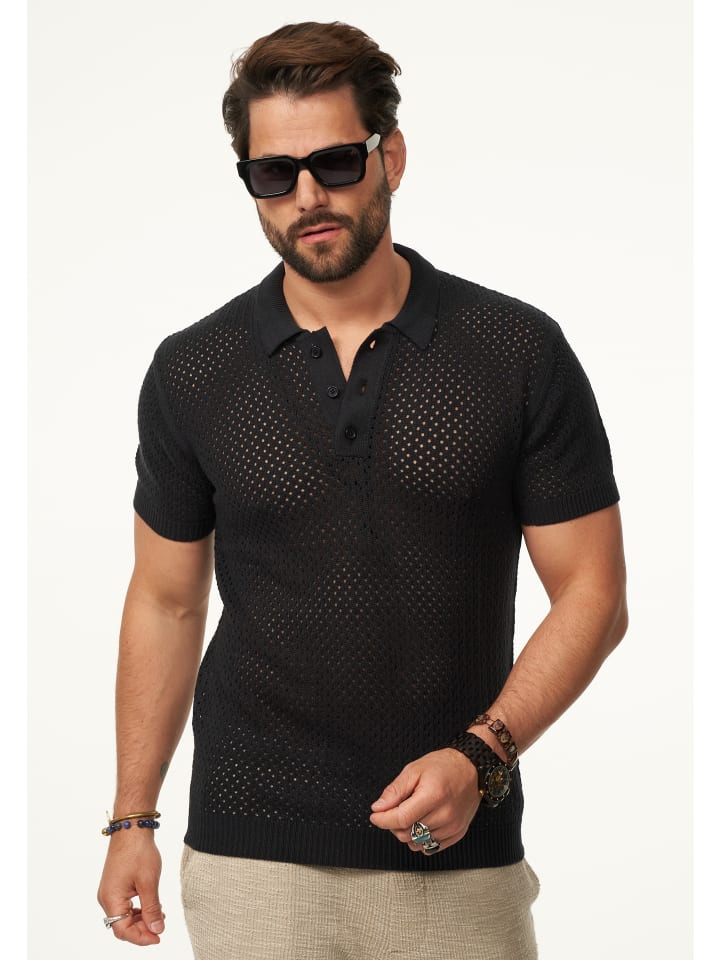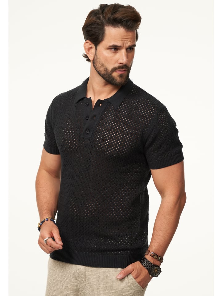 Рубашка-поло SOULSTAR из тонкой вязки с короткими рукавами в модном стиле вязания крючком — ваш стильный и идеальный предмет гардероба. Вневременной, современный, универсальный — элегантный трикотаж и свободный крой обеспечивают стильный силуэт и максимальный комфорт. Независимо от того, ищете ли вы элегантный образ в стиле smart casual или непринужденную элегантность, эта рубашка-поло идеально подойдет для любого случая. 100% хлопок делает рубашку особенно удобной в носке, дышащей и долговечной — она сохраняет форму даже после многочисленных стирок. Идеально подходит для повседневной носки или в качестве стильного многослойного элемента. Рост нашей модели — 1,86 м, вес — 90 кг, размер L соответствует современной фигуре. Независимо от того, носите ли вы эту трикотажную рубашку-поло отдельно или под пиджаком, ее простой и элегантный дизайн делает ее по-настоящему незаменимой вещью в вашем гардеробе. Минималистичный, удобный, вневременной — ваш новый любимый предмет на каждый день. - Современная трикотажная рубашка-поло с короткими рукавами от SOULSTAR