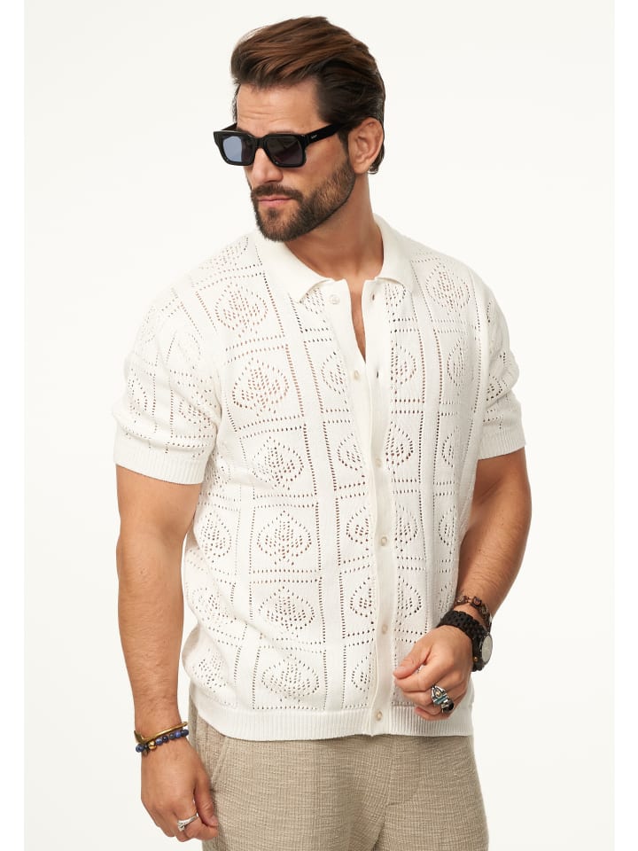 - Современный гибридный дизайн вязаной крючком рубашки поло и кардигана от SOULSTAR