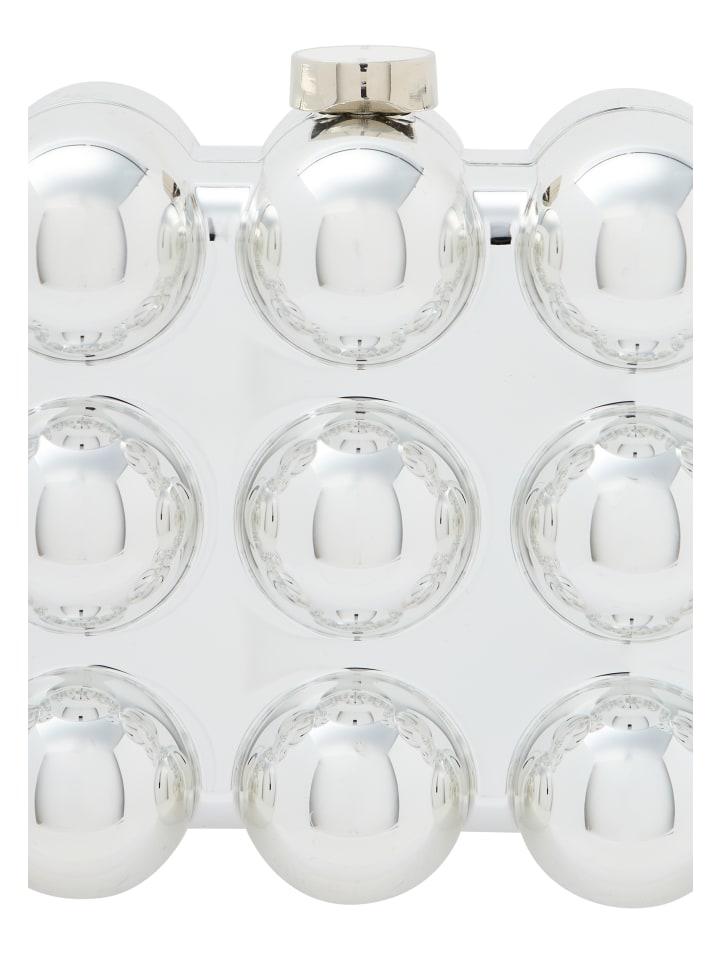 Поднимите свой праздничный ансамбль с этим потрясающим прямоугольным клатчем, демонстрирующим поразительный геометрический узор из округлых куполообразных форм. Компактный дизайн отличается шикарной декоративной застежкой для легкого доступа и включает дополнительную цепочку для универсальных вариантов укладки. Эта вещь добавит современный, скульптурный стиль любому наряду, делая ее обязательным аксессуаром.