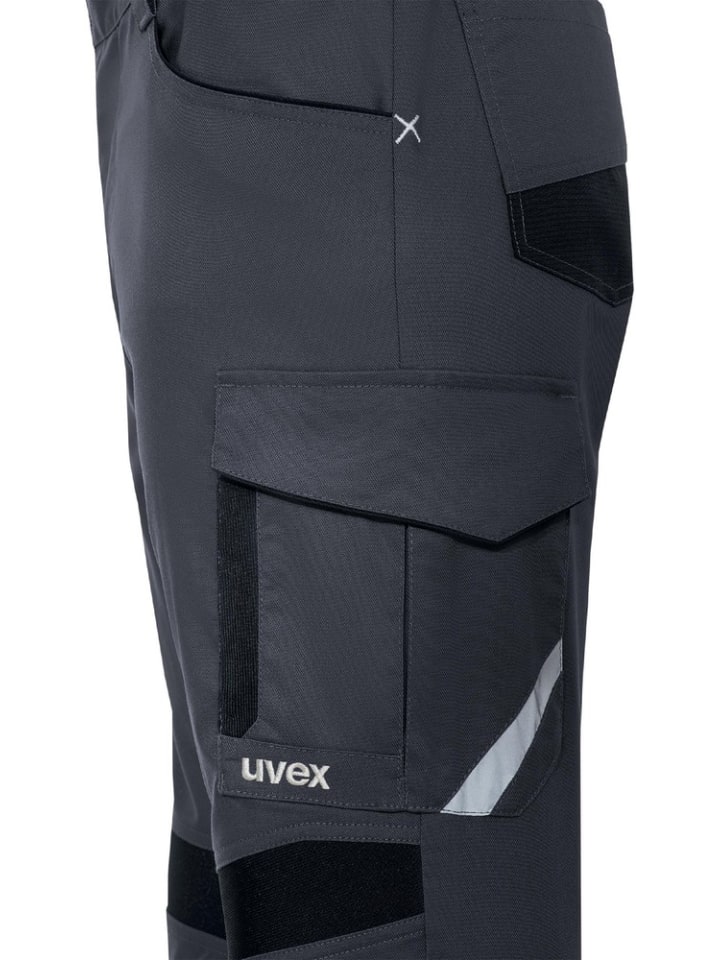 -Мужские брюки-карго - uvex suXXeed industry, -Модель: 7311, -Арт. №: 88325, -Материал: 49% полиэстер, 49% хлопок, 2% эластан, прибл. 260 г/м², -Цвет: антрацит, -3D покрой, -Материал, растягивающийся в 2 стороны, -Два кармана сзади и на бедрах, -Задние карманы, усиленные Cordura, -Двойной карман для линейки из Cordura, -Карман для мобильного телефона и инструмента, -Все застежки закрыты, -Эластичные вставки над коленями, -Накладной карман для наколенника, -Светоотражающие детали, -Узкие концы брючин, -Размеры: 23-32, 42-66, 90-110, -Доплата за размер oversize: от размера 28, 56 или 106 +10%, -Уход: обычная стирка 60°C, не отбеливать, -Возможна машинная сушка, низкая температура 60°C, бережный процесс сушки, -Глажение при максимальной температуре подошвы 110°C без пара, -Профессиональная химчистка с перхлорэтиленом и/или углеводородами, обычный процесс, -Промышленная стирка: подходит